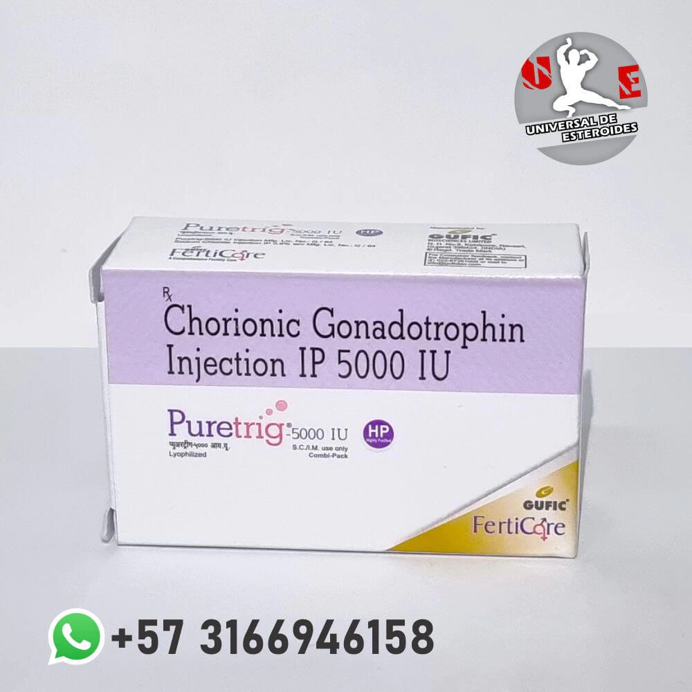Inyección de Gonadotropina Corionica Humana IP 5,000 unidades internacionales, manufacturado por la compan̈ia GUFIC BIOSCIENCES LIMITED.